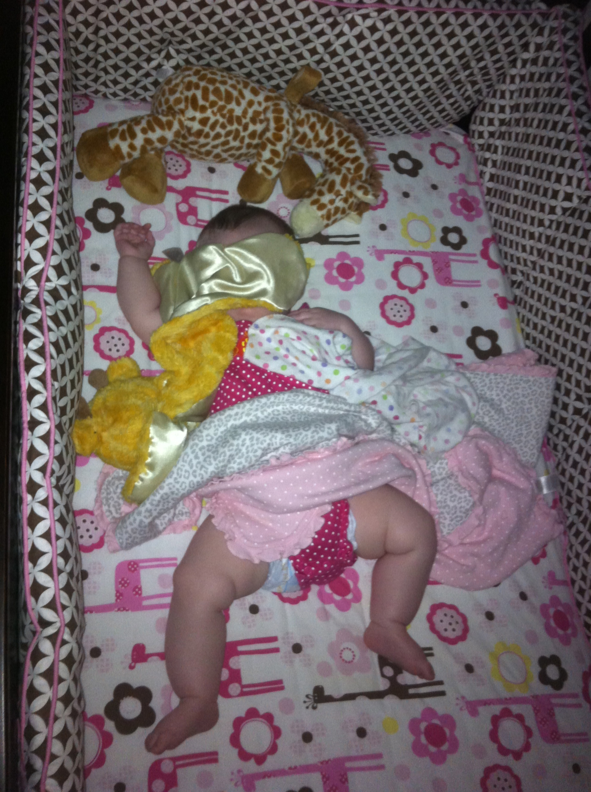 *Our living room: What once was a room with a couch, a loveseat, and a recliner, now is a room bursting at the seams with a bouncer seat, a jumperoo, a bumbo seat, your toy box, and an activity mat. It actually feels like we have extra room, because we took your swing down about a month ago. If you walk in our house, it’s clear that a little girl is spoiled rotten here.