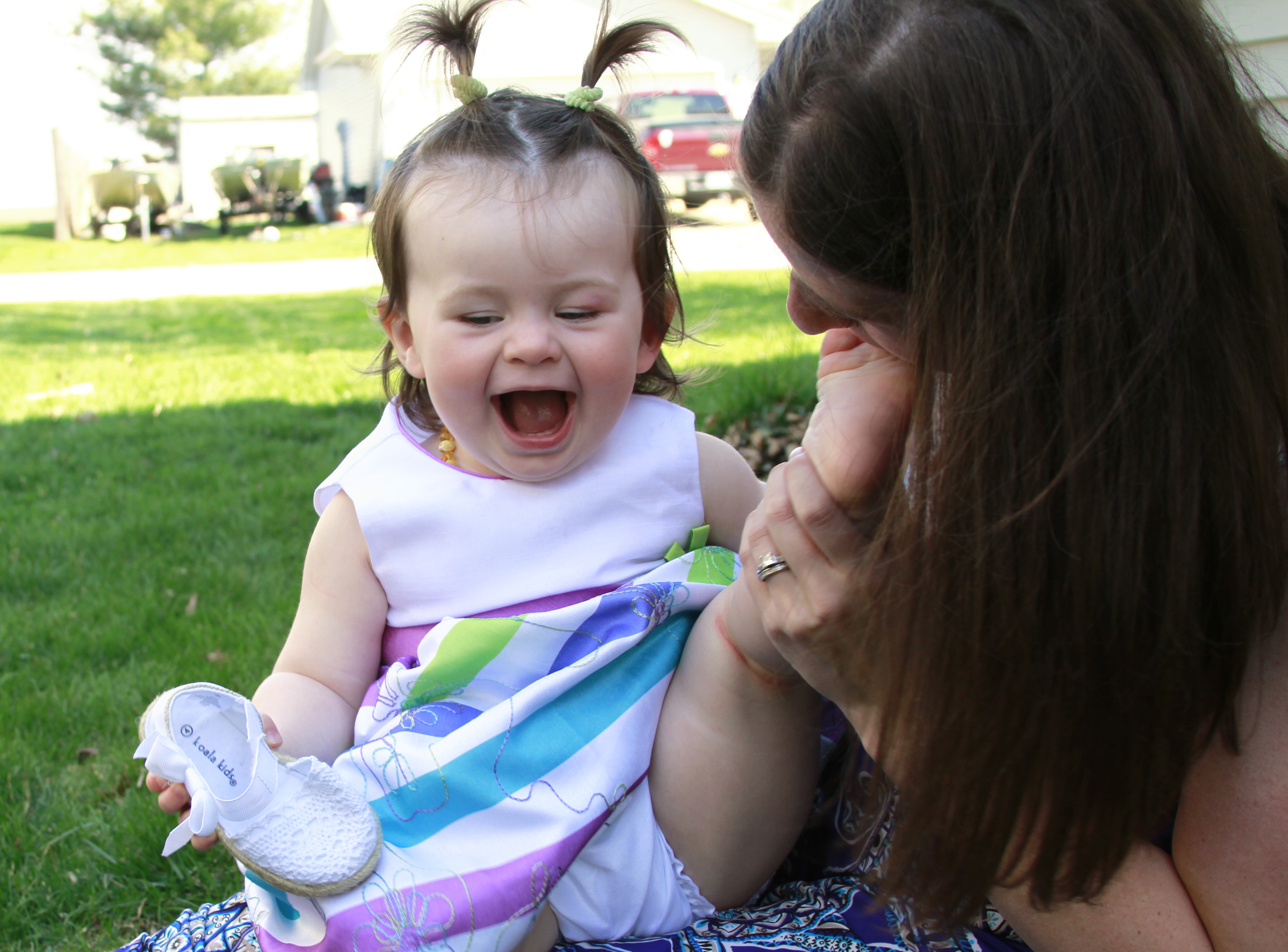Michael, you are at a period in your life that I fondly remember from Pax’s first summer. You are starting to connect your thoughts to your hands and your actions. The wheels are turning and you are busy exploring. You reach your hand up to touch the trickling water during your bath. You play with my hair. You give these amazingly huge open mouthed kisses where you grab our heads with both hands and just pull us into you. When you smile, it starts at your forehead and doesn’t stop until your toes are wiggling and your ankles are twirling. It’s in these moments that I realize we’ll make it. You are still my sensitive little man. From the moment I get home, you have to be with me. If I set you down or give you to Daddy to make supper, the alligator tears start flowing immediately. While I pretend that this makes me crazy, I secretly beam knowing that I’m your “enough.” Your favorite thing to do in the world is watch your sister. You giggle at her, reach for her, and think she’s pretty cool. Today you finally popped your first little tooth through. You’re crazy strong and are starting to roll everywhere you want to go, but no signs of crawling yet.