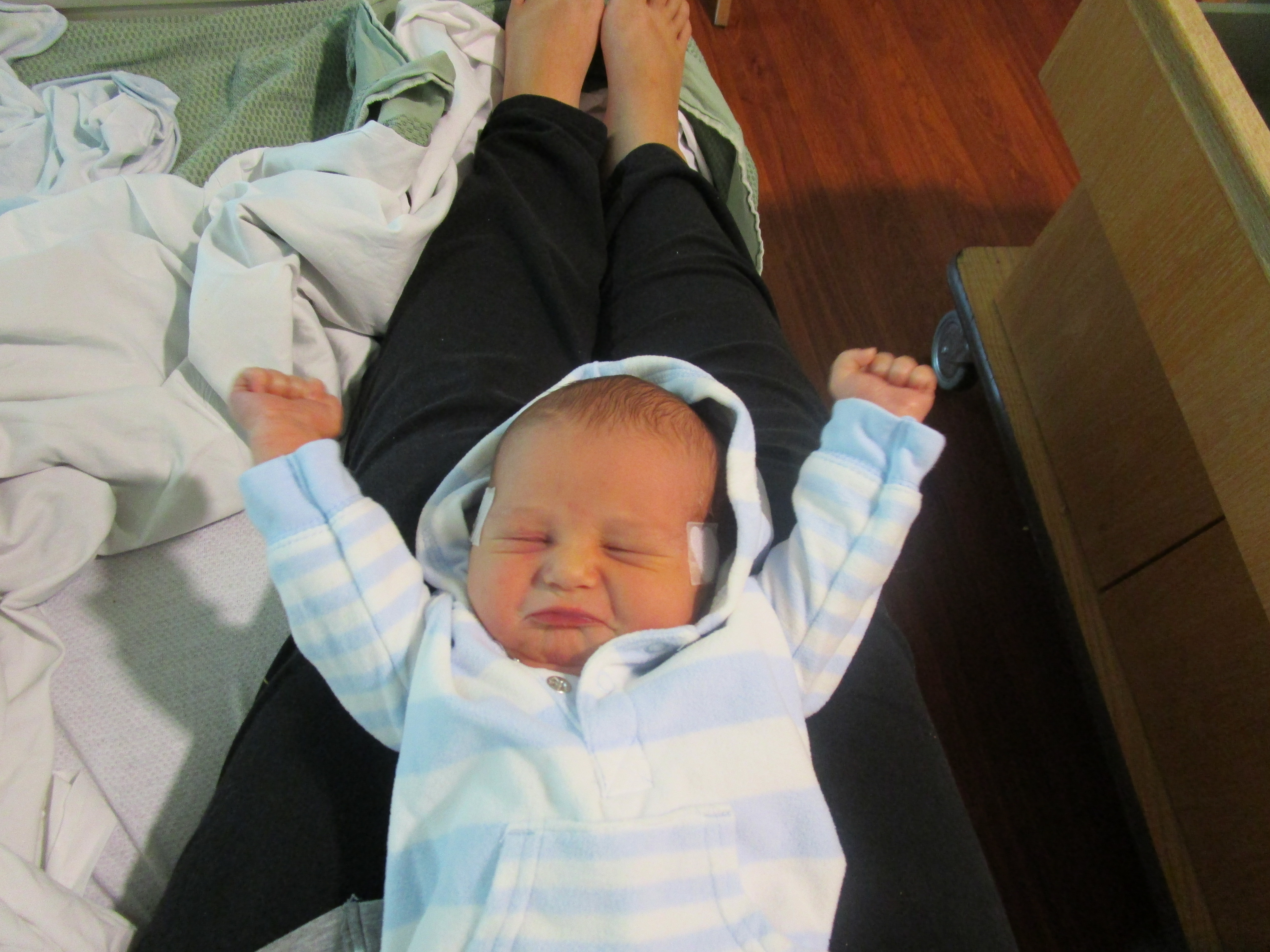I swore I wouldn’t write about this next part- so skip over it when you’re 16. Since day 1 (actually it was day 4 by the time they got around to it), I’ve thought your circumcision was messed up. Then, when Pax started calling it a button, I became a little more worried. At your 6 month check up, I asked the pediatrician to really look at it. She said it was just because you were chubby, but then looked a little more and said you might have mild hypospadias. I’d never heard of it, so I made the mistake I always make- I googled it. She told us that you weighed a little over 20 pounds and you were perfect- I replied, “Yeah, except his man parts, and that’s a pretty big deal!” Several nurses came in before you got shots just to check out your rolls. Your arms look like I put rubber bands on them, especially between your elbows and your wrists. Sometimes it’s a struggle just to not kiss you all day long. The pediatrician referred us to a pediatric urologist, and of course we couldn’t get in for almost a month. I spent that entire month preparing myself for the surgery you would have to undergo. I cuddled you extra and spent way too much time talking to other people about your man parts. Apparently this is fairly common, so why on earth does nobody tell you that your son can be born with a “broken” part? We made it to the urologist last Wednesday and I was nervous sick. The appointment was at 2:45, we got there at 2:30. We didn’t get back to the room until 3:55. Ridiculous. The doctor finally saw us and had me unzip your sleeper and take your diaper off. His first comment, “Well he’s so fat you can’t even see it!” (I’m so sorry I’m telling you this, but one day it’ll be a funny story.) He started poking around and I watched your daddy turn inside out. Then he said, “Ok, he’s not going to like what I’m about to do” and I nearly fell apart. After you let out a scream, I realized what he was doing. Because you were so chubby, your circumcision had almost healed over itself. He had to “rip” it back to where it needed to be. All the sudden, you no longer had a button and there were parts of you I’d never seen before. It must have sucked, and I’m so sorry for putting you through that, but it was the best news ever for me. I felt a load lifted off my shoulders. You were no longer “broken” you were just fat. That we knew already. We were sent home after 5 minutes and told that you would be very sore, but continue with vaseline so you don’t get stuck again. Good news buddy, your man parts will work just fine.